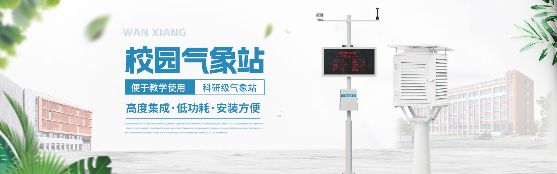 山東萬象環境科技有限公司官網主要產品有防爆氣象站,校園氣象站,農業氣象站,負氧離子監測站,超聲波氣象站,歡迎咨詢15610293837!